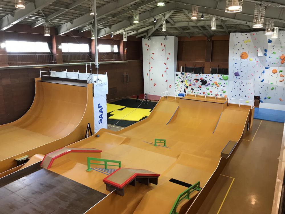 スケートボード、スポーツクライミング、スラックラインの3つが体験できる全国初の屋内複合施設です。